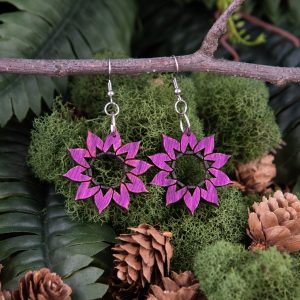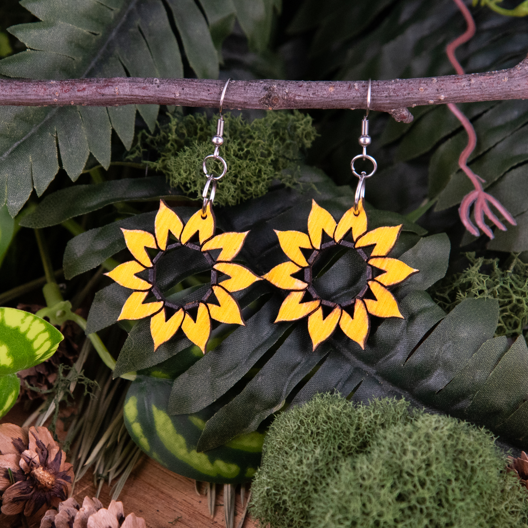 Each pair of Sunshine on Tap earrings is thoughtfully cut, and assembled by hand on site.